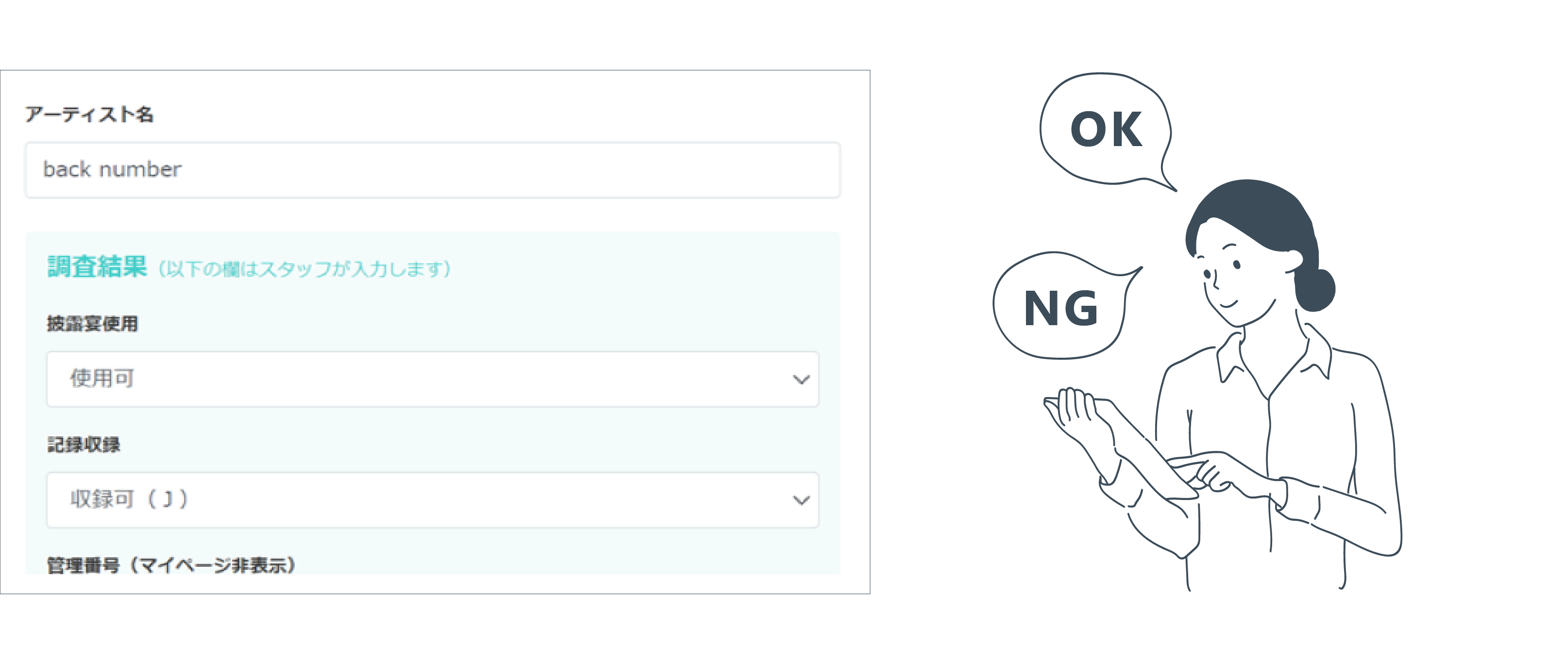 入力いただいたBGMについて スタッフが以下の調査を行います